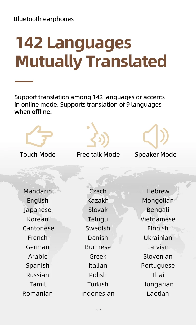مع سماعات الأذن المترجم الذكي، أصبح حاجز اللغة من الماضي! تدعم هذه السماعة المتطورة الترجمة الفورية في الوقت الحقيقي لأكثر من 142 لغة باستخدام الذكاء الاصطناعي وتقنية ChatGPT، مما يجعلها مثالية للمسافرين، الطلاب، رجال الأعمال، والمغامرين في جميع أنحاء العالم.